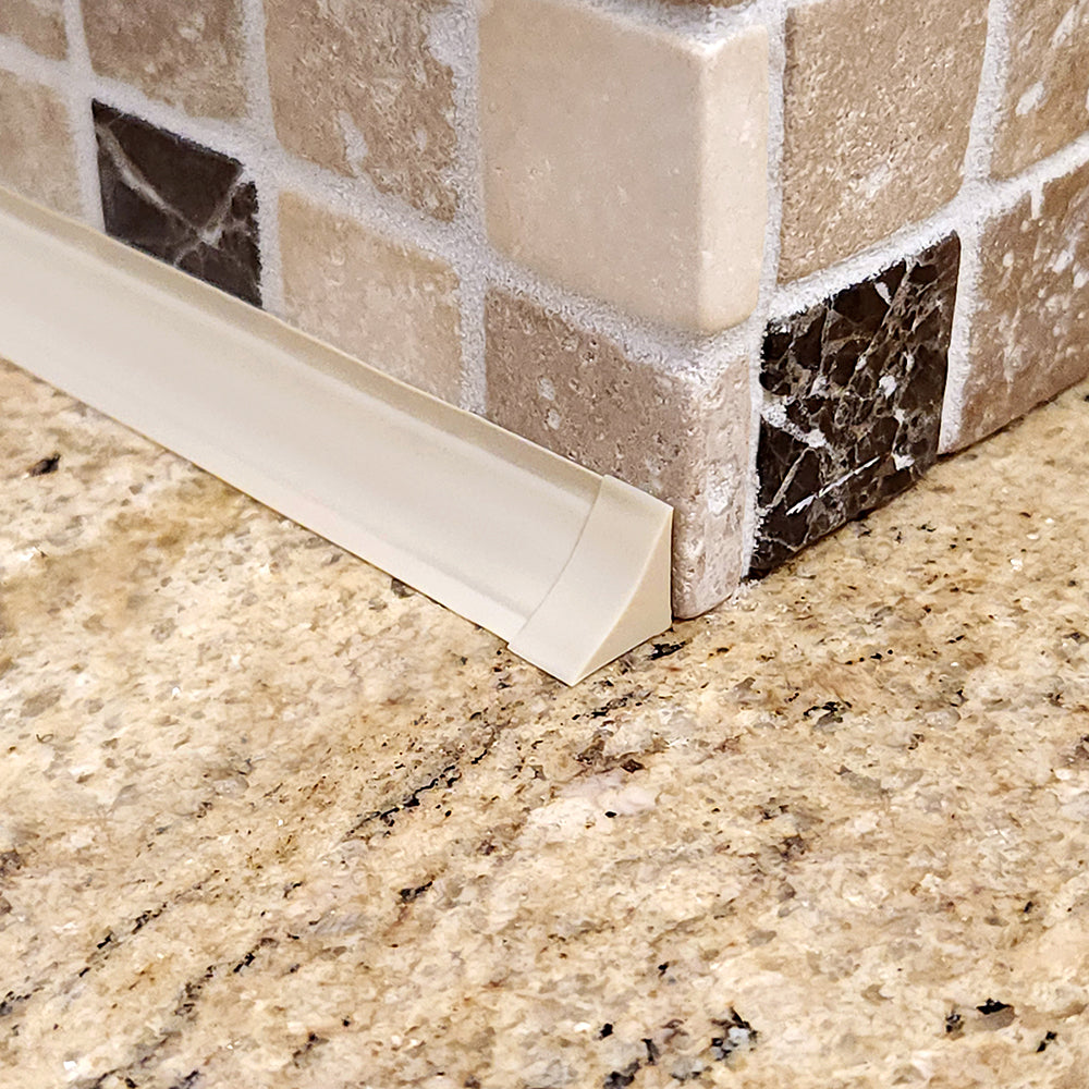 InstaTrim will not adhere to old silicone! All silicone caulk, residue and oils MUST be 100% removed prior to installing InstaTrim strips. See “Silicone Removal Process” for details on how to properly remove all silicone. NOTE: some tile, granite and quartz products come with a silicone sealer to prevent moisture and stains from absorbing into the surface.