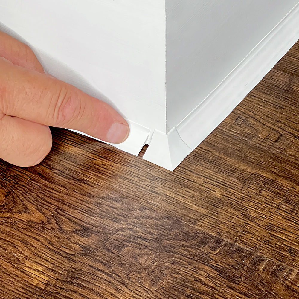 Next, firmly press the strip into the corner along the entire length, making sure you are applying enough pressure to allow the adhesive to bond with your application surface. We recommend using the InstaTrim Applicator Tool which helps to provide even constant pressure for the adhesive and also makes it easier on your fingers.