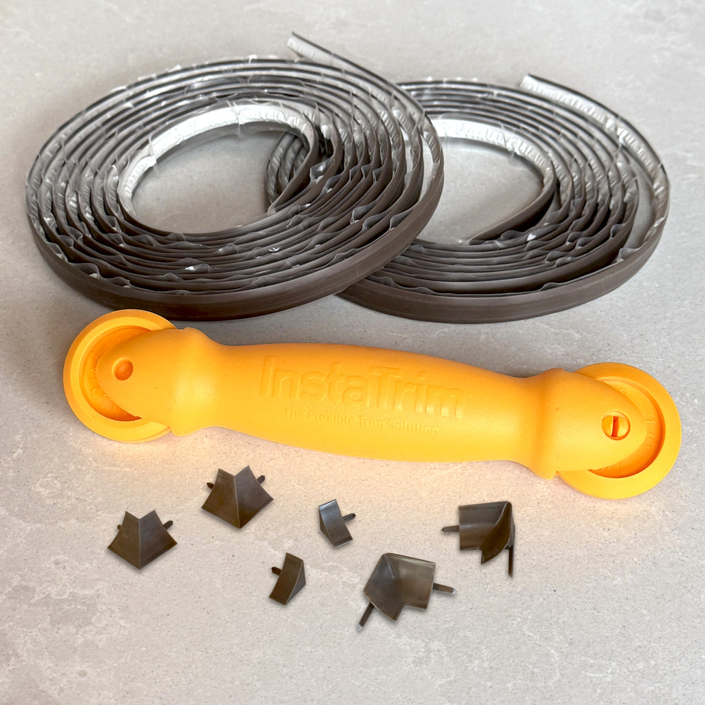 Our Mind the Gap Kit has all the pieces you need to get your DIY project completed efficiently. The InstaTrim Mind the Gap Kit includes our 1/2 inch wide flexible, self-adhesive trim strips and the Applicator tool. InstaTrim is perfect for use on any trim project - floors, doors, windows, backsplash, toilets, wall corners and more. InstaTrim's unique design provides protection against dust, dirt, moisture and air movement. The InstaTrim Mind the Gap Kit Made in USA and includes: