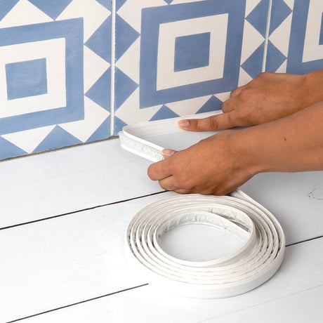 Make your DIY projects quick and easy with our White flexible, self-adhesive trim strips. Available in 1/2" and 3/4" wide. Perfect for use on any trim project - floors, doors, windows, backsplash, toilets, wall corners and more. InstaTrim's unique design provides protection against dust, dirt, moisture and air movement.